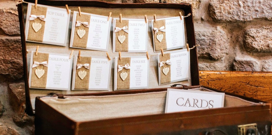 All our table plans are available to hire or keep. The options are endless, we can provide them on an ornate framed mirror, on a board or for those of you who love the vintage look we have a vintage suitcase available to hire, it can be used as both a table plan and postbox for your cards and presents; again it can be dressed how you wish.
